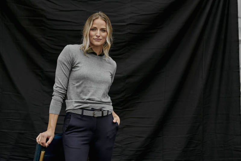 Damski sweter Oakville z okrągłym dekoltem ma lekką, miękką dzianinę i nowoczesny krój. Mieszana kompozycja przędzy zapewnia, że dzięki bawełnie jest przyjemny w dotyku a dzięki nylonowi jest niezwykle trwały. Prążkowany dół i rękaw. Można prać w pralce. Sweter jest dostępny również w fasonie męskim.