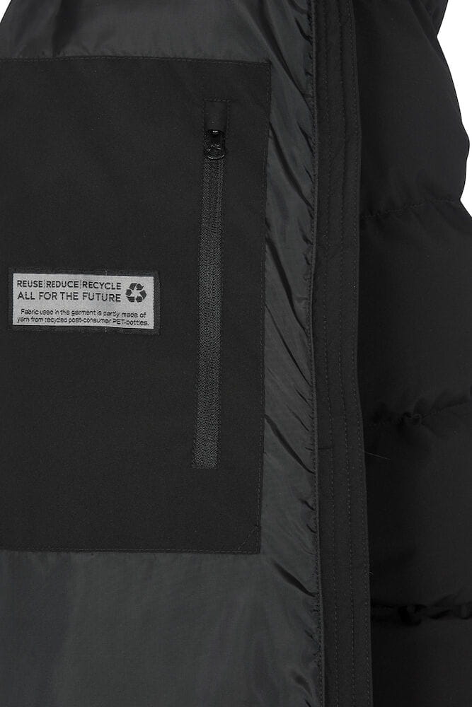 Grubo ocieplana damska kurtka szwedzkiej marki D.A.D Sportswear, ze stałym kapturem, w całości podszyta szerokimi naszytymi kanałami. Wykonana z certyfikowanego poliestru pochodzącego z recyklingu, który jest odporny na wiatr i wodę (WP5000/MVP3000). Kurtka DUNDAS JACKET WOMAN dla lepszego komfortu użytkowania, poddana jest obróbce końcowej za pomocą Bionic Finish Eco, która zapewnia również efekt hydrofobowy. Widoczny pełny zamek błyskawiczny biegnący w górę kołnierza oraz przednie kieszenie z zamkami błyskawicznymi i patkami kieszeniowymi. 3 kieszenie wewnętrzne, w tym jedna zapinana na zamek. Ukryta mocna gumka wokół otworu kaptura, u dołu i przy mankietach. Kurtka DUNDAS JACKET WOMAN dostępna jest również w wersji męskiej.