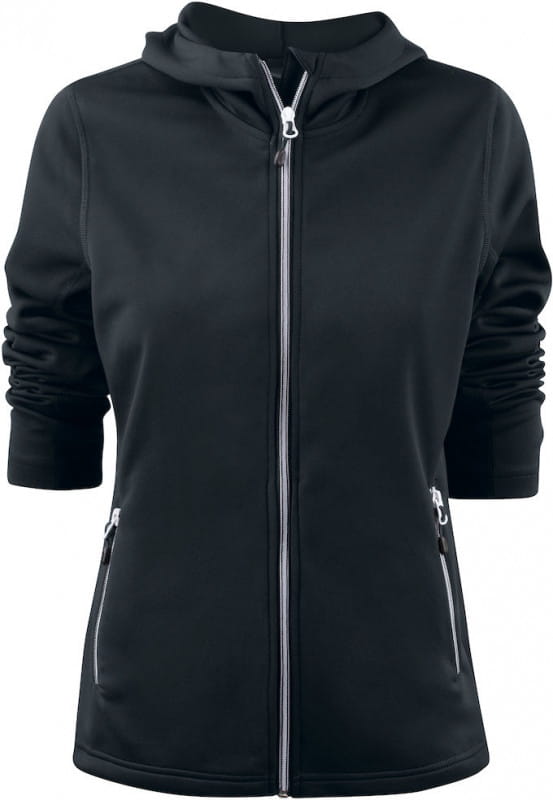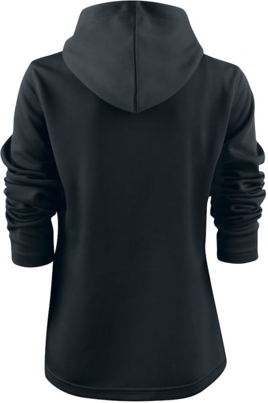 Damska lekka bluza z kapturem, z rozciągliwego materiału dla aktywnych ludzi. Kieszenie z przodu, kontrastowe zamki oraz dekoracyjne płaskie szwy w overloku.
