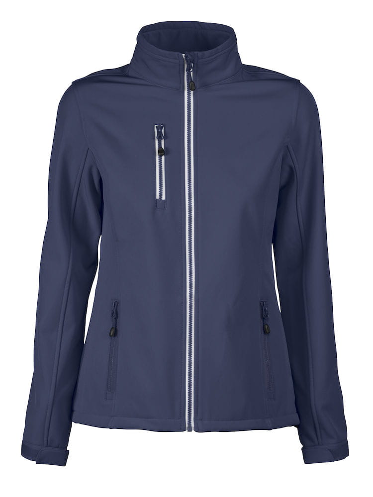 Damski softshell z membraną (WP 1000) i ciepłym polarem od wewnątrz. Kontrastowe suwaki YKK z przodu, na kieszeniach przednich i w kieszeni na piersi. Elastyczny ściągacz na dole. Mankiety regulowane na rzep.